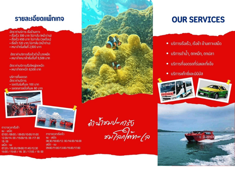 และแบบเหมาลำเรือส่วนตัว รวมไปถึงบริการเรือเร็วทริปดำน้ำ